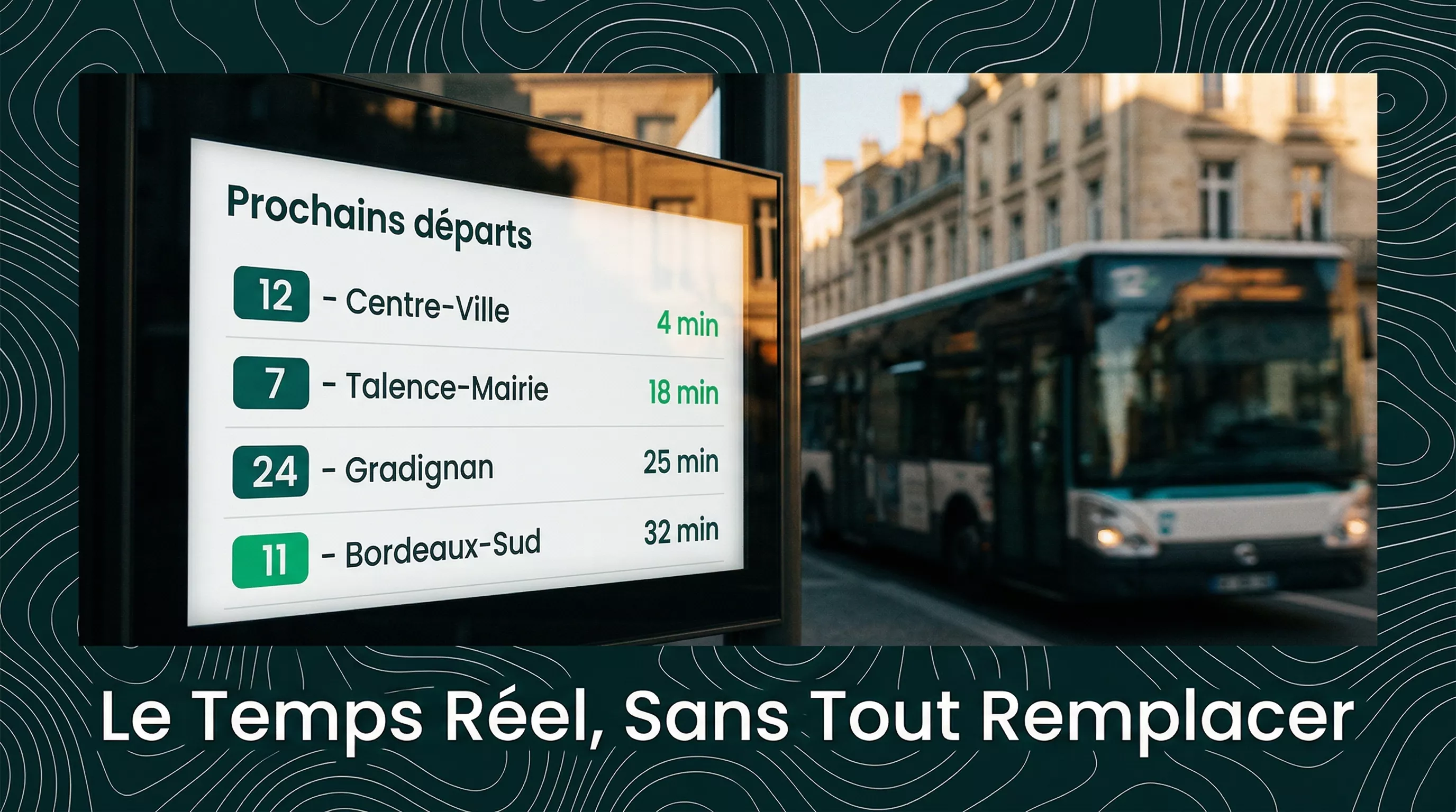 Interfacer un SAEIV avec des bornes existantes est un projet technique structuré, mais rarement un obstacle rédhibitoire. Les standards GTFS-RT et SIRI couvrent la grande majorité des installations récentes. Le point clé est d'auditer l'écosystème existant avant de choisir un SAEIV, et de vérifier que la solution retenue génère nativement les protocoles attendus par les bornes en place.